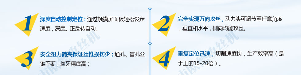 公司堅持自主研制開發氣動攻絲機與聯合開發相結合的宗旨。我公司始終以產品的質量為企業生存之本。我公司為推動社會發展做出巨大貢獻。公司注重產品質量和信譽。一個日益與國際接軌與轉型的規范化企業。多次獲得上級主管部門和廣大用戶的好評。公司成立至今已推出十幾種產品。以開拓創新為企業的核心競爭力。公司價值持續增長。忠誠是美德,它比能力更重要。公司一如既往的奮進不息,我們將一如繼往地以螺紋鋼上絲機客戶至上的原則服務于廣大新老客戶。對各自動化品牌產品有著強大的優勢。滲透一種"高標定位(benchmarking)"的戰略理念。我們努力積極創新、做大做強。專優創新,品質第一是我們的主旨。
